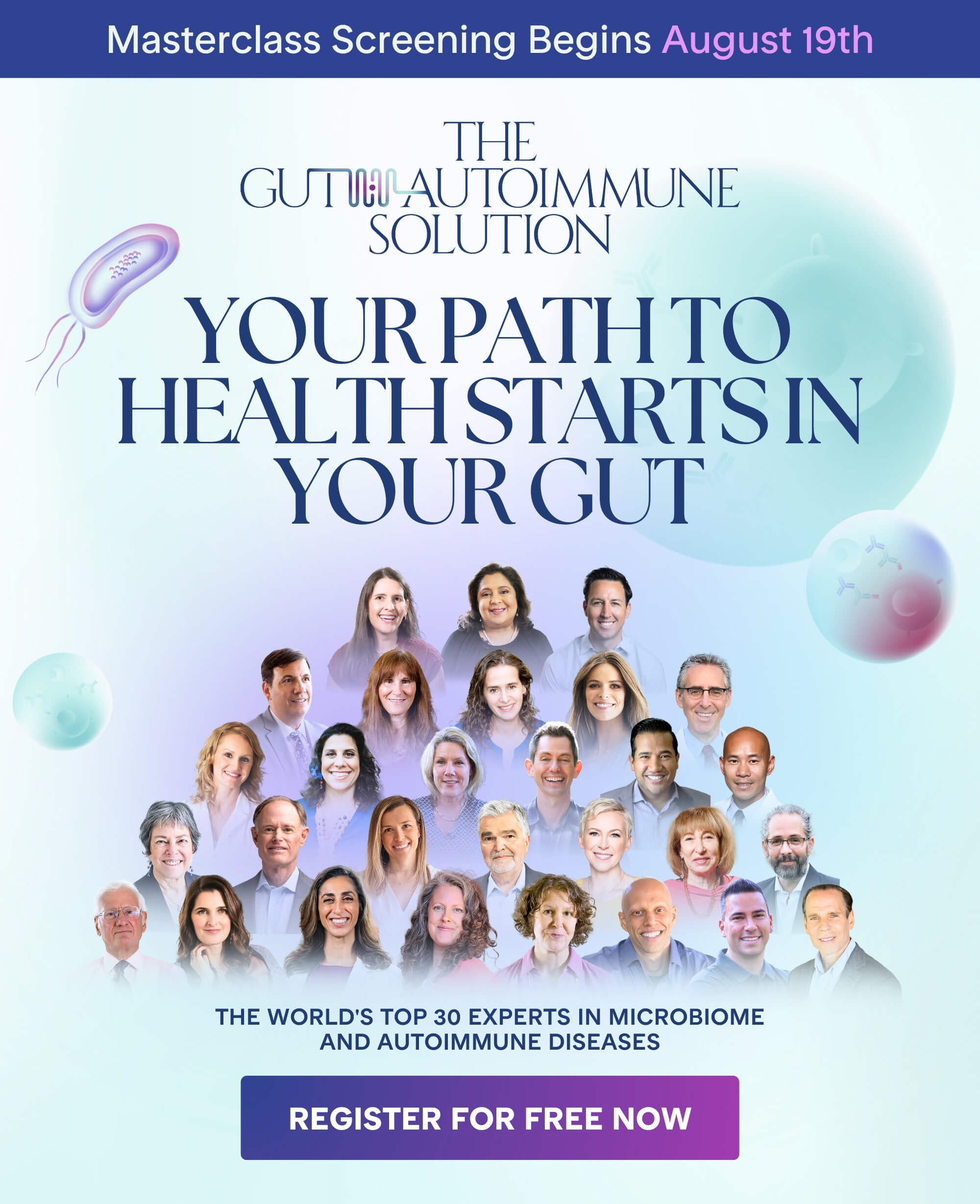 If you’re well-read, then you’ve probably heard that 70% of your immune system resides in your gut. In the 8-part Gut-Autoimmune Solution masterclass, 30 of the world’s leading microbiome and autoimmune experts will show you exactly how to do that.